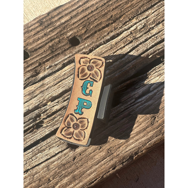 4 inch Hair claw with tooled leather panels