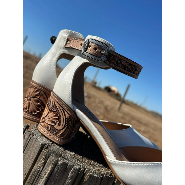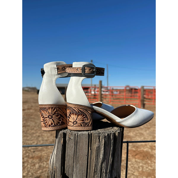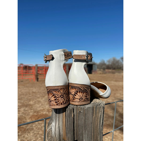 2 inch tooled heel with closed Toe and ankle strap